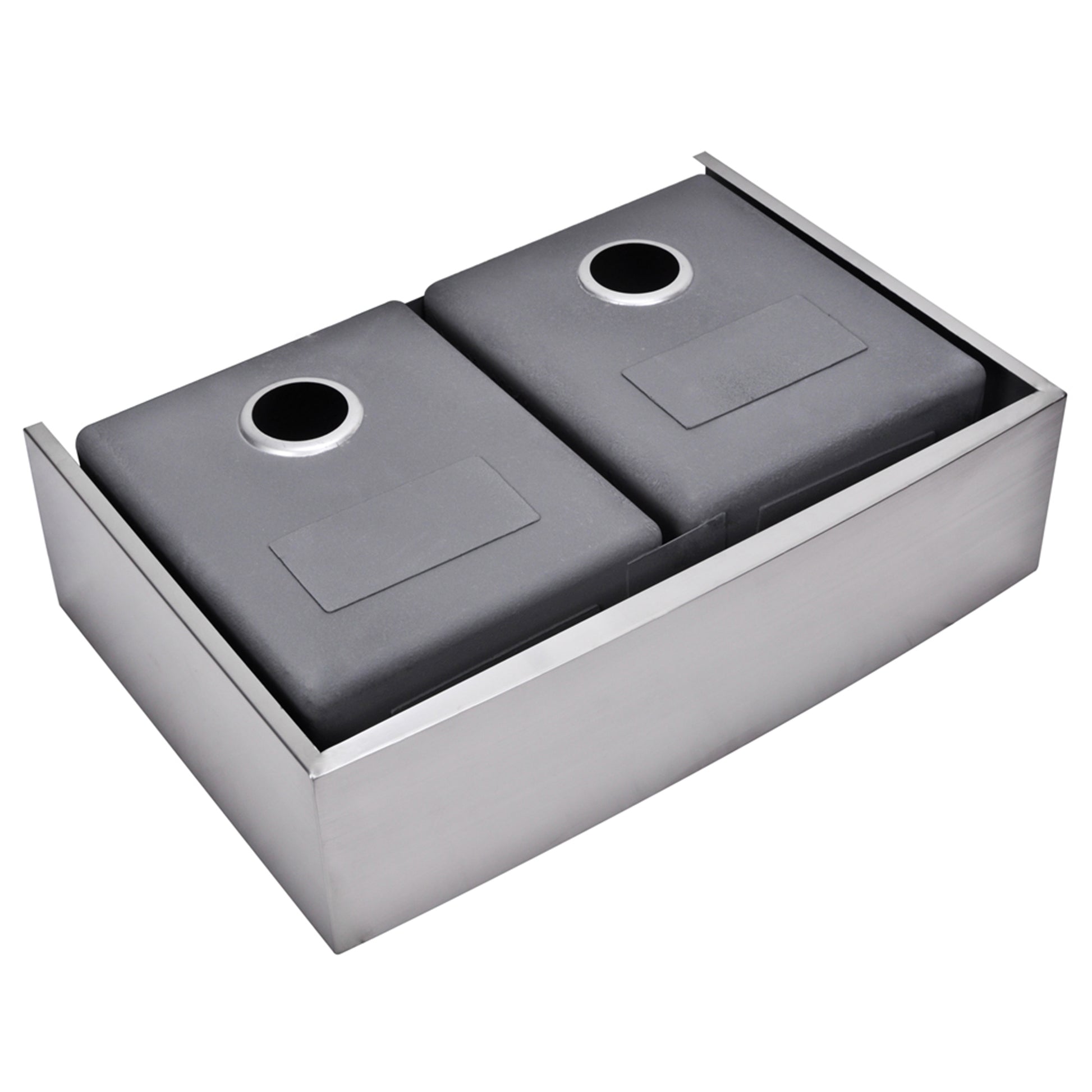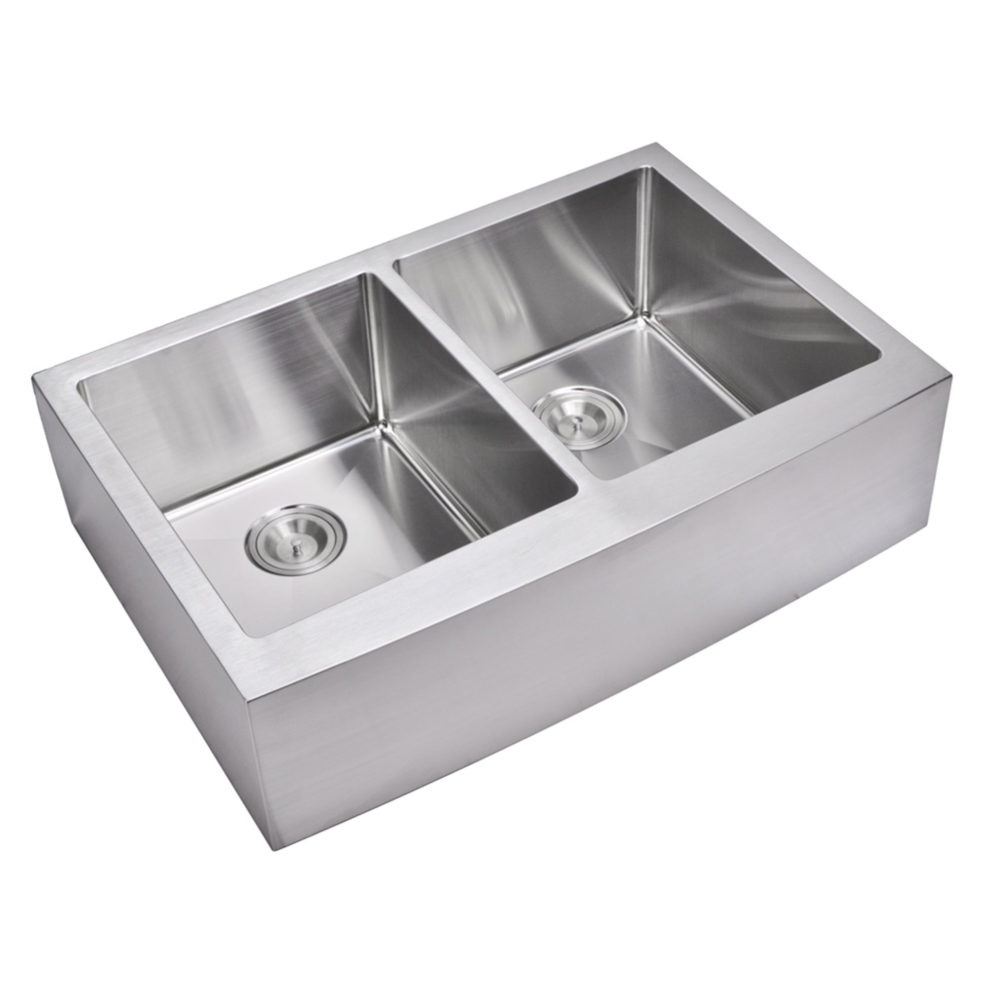 33 Inch X 22 50/50 Double Bowl Stainless Steel Kitchen Sink With Drains, Strainers, And Bottom Grids