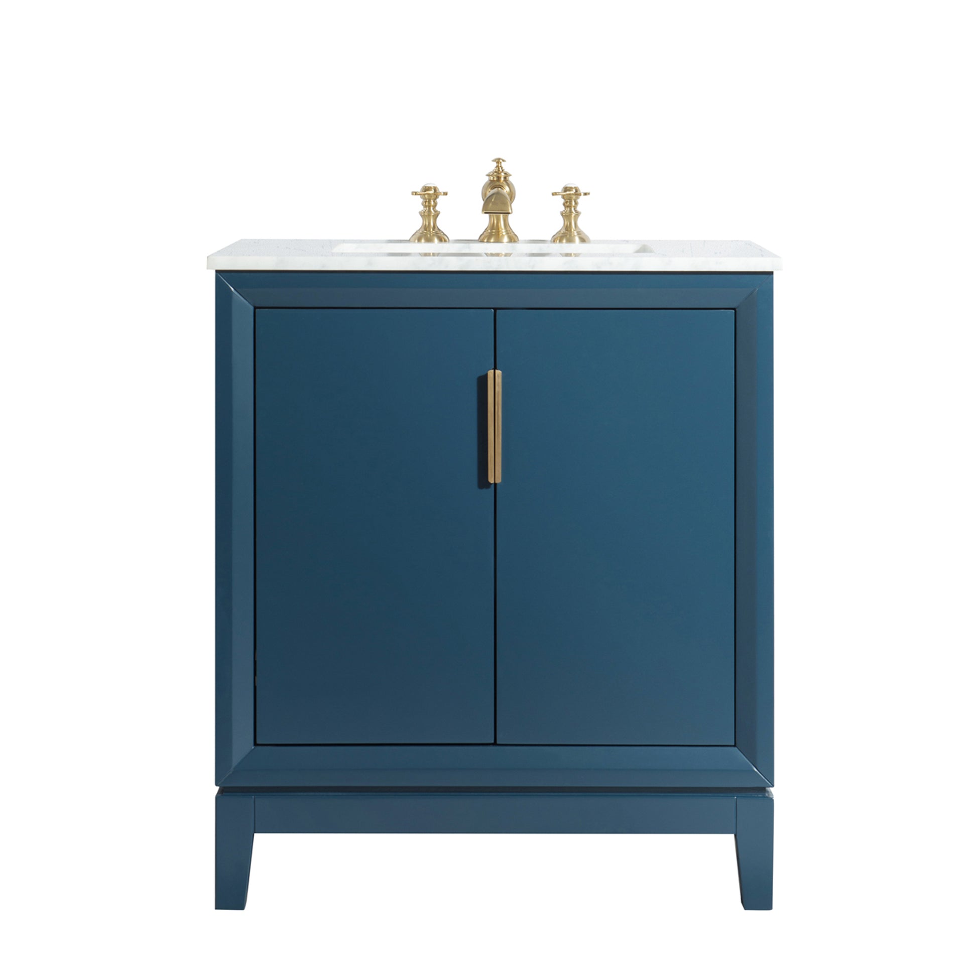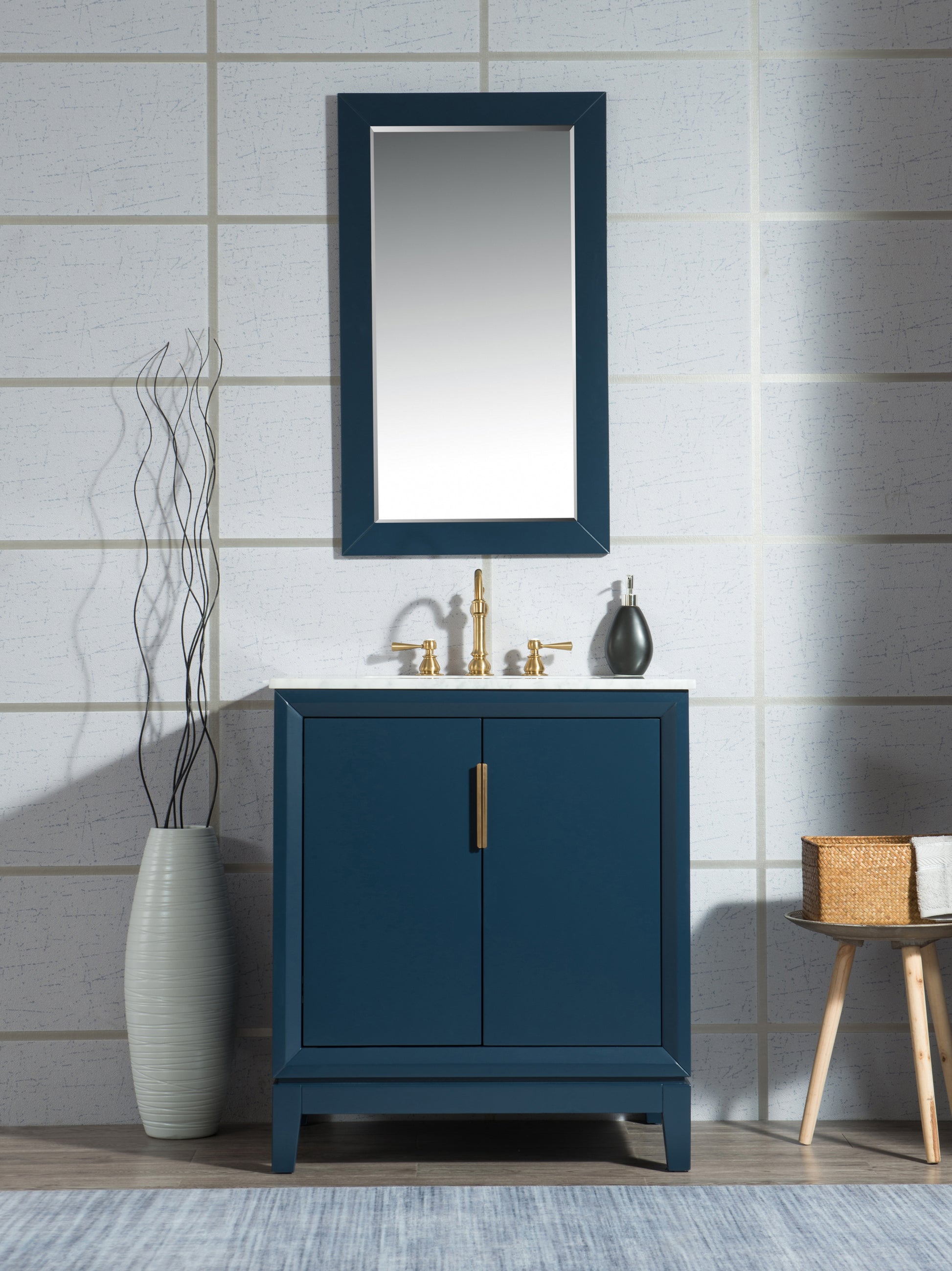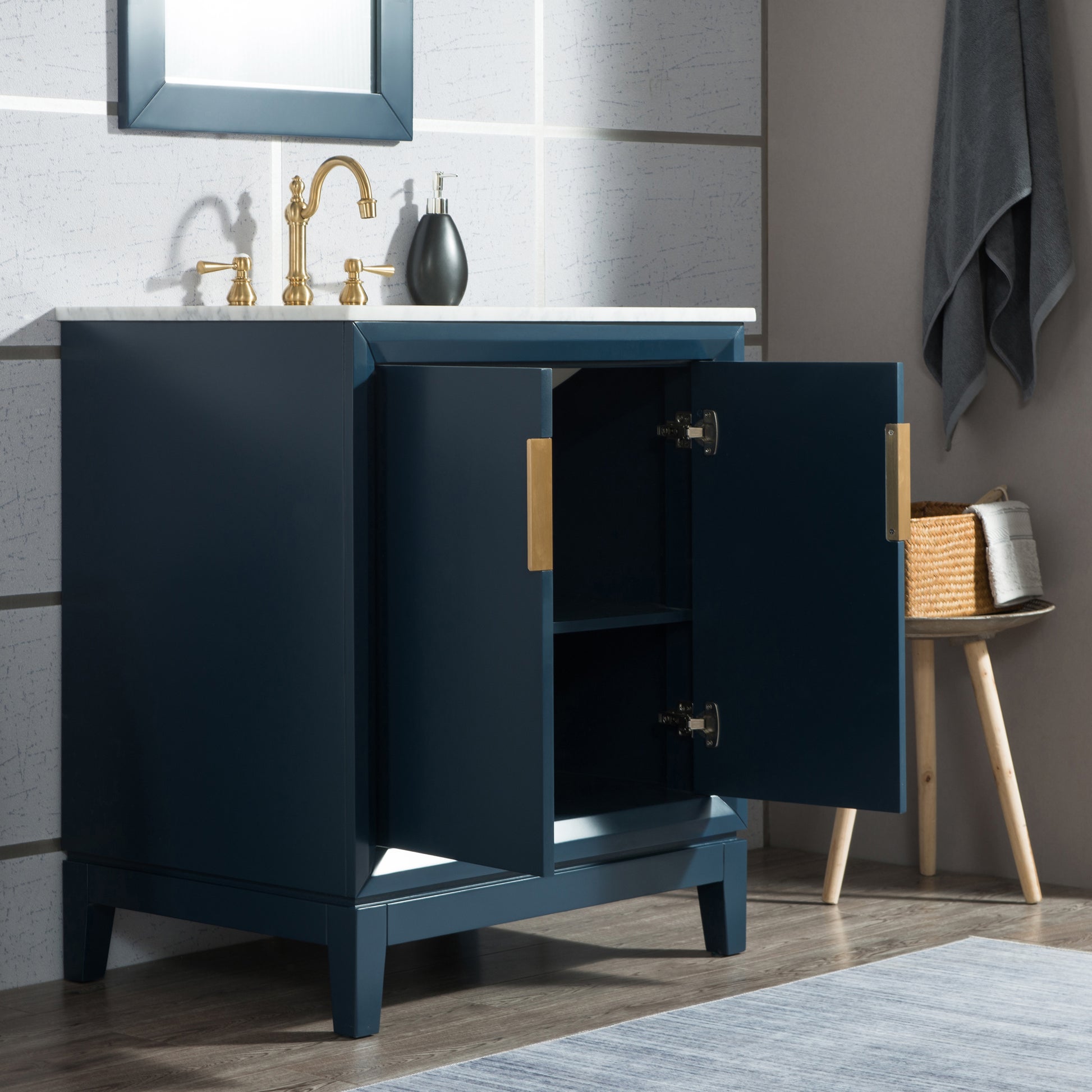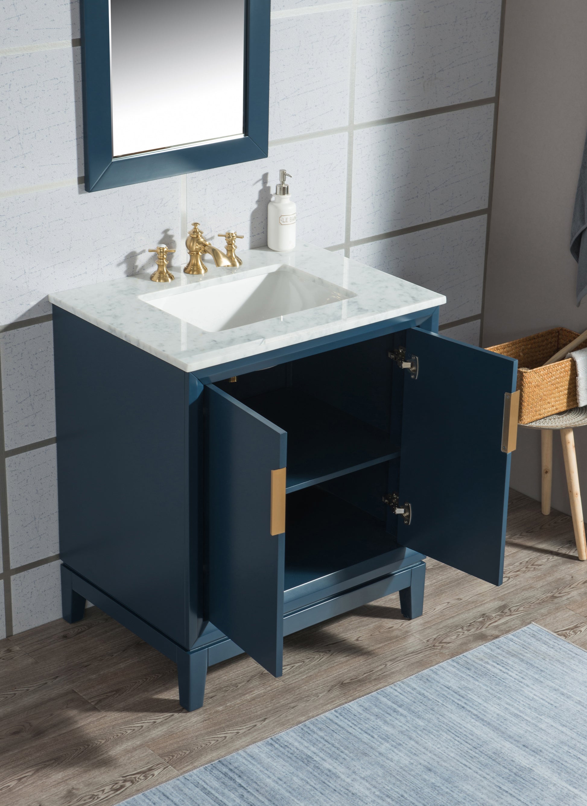 Elizabeth 30-Inch Single Sink Carrara White Marble Vanity In Monarch Blue set