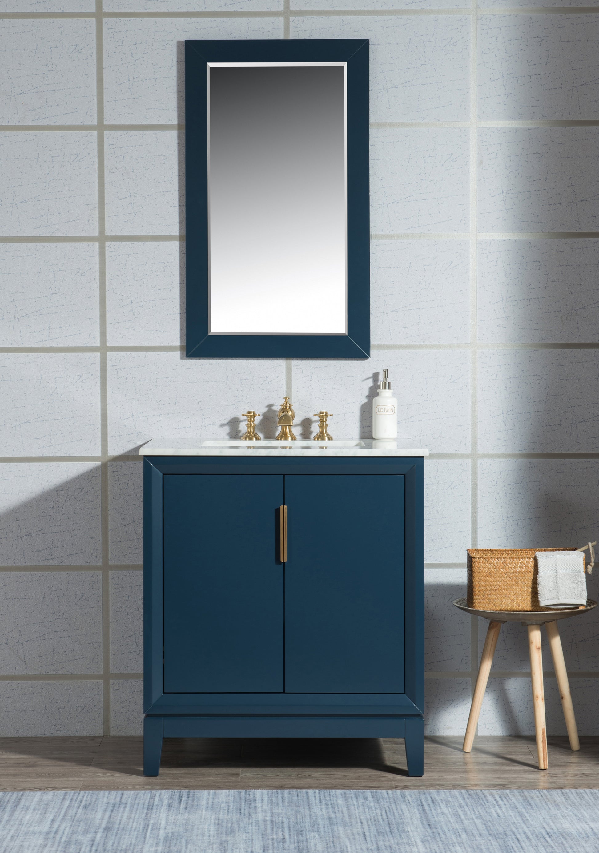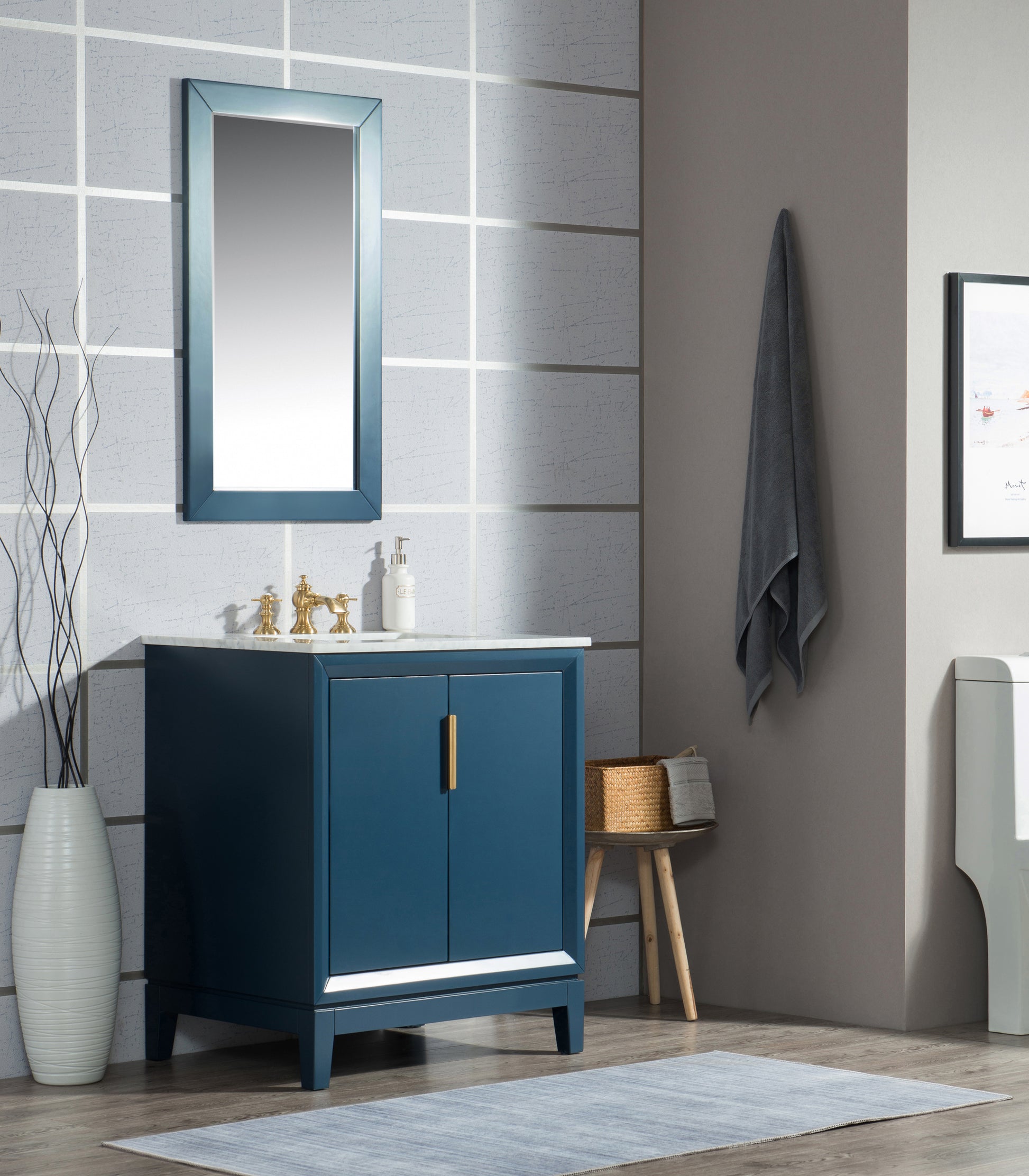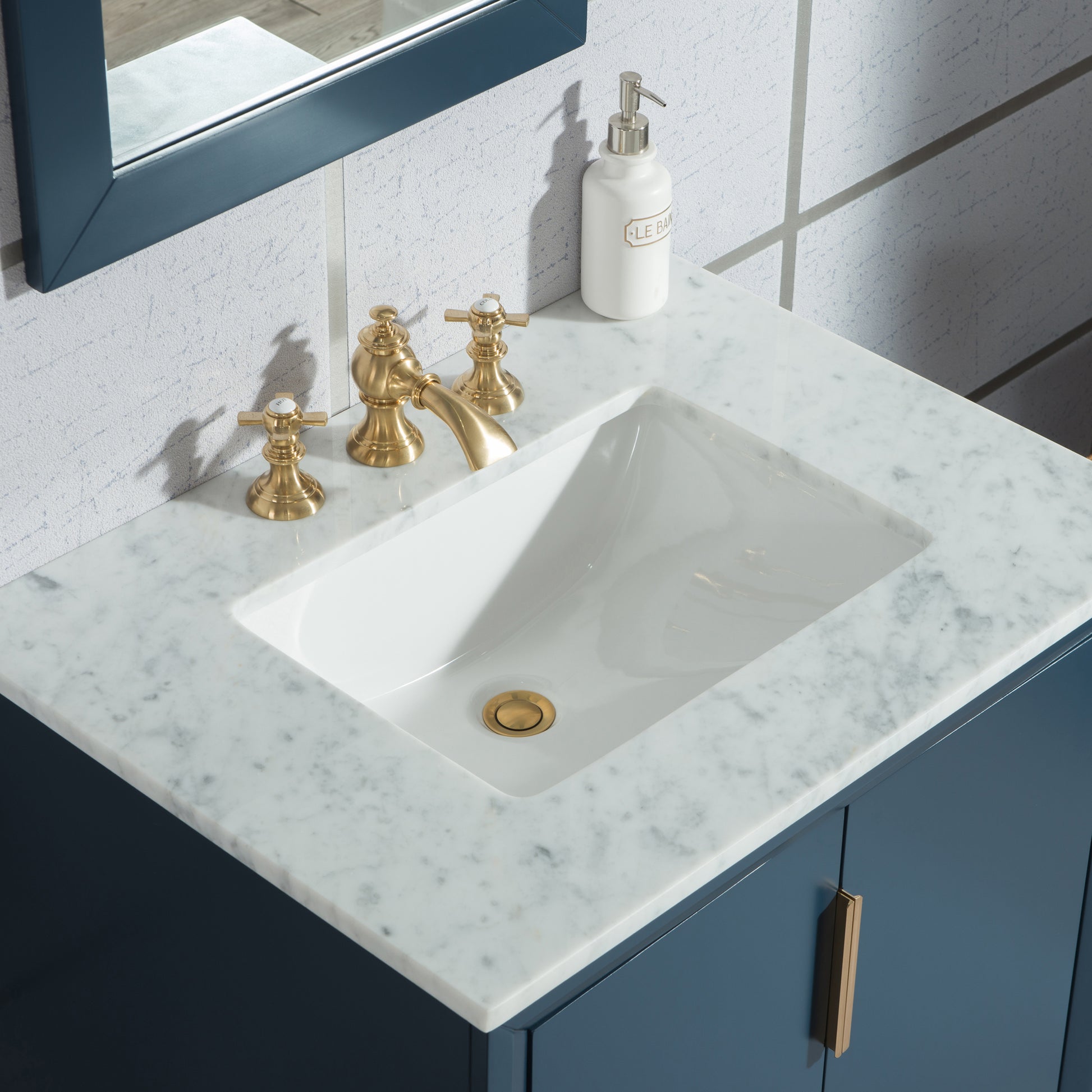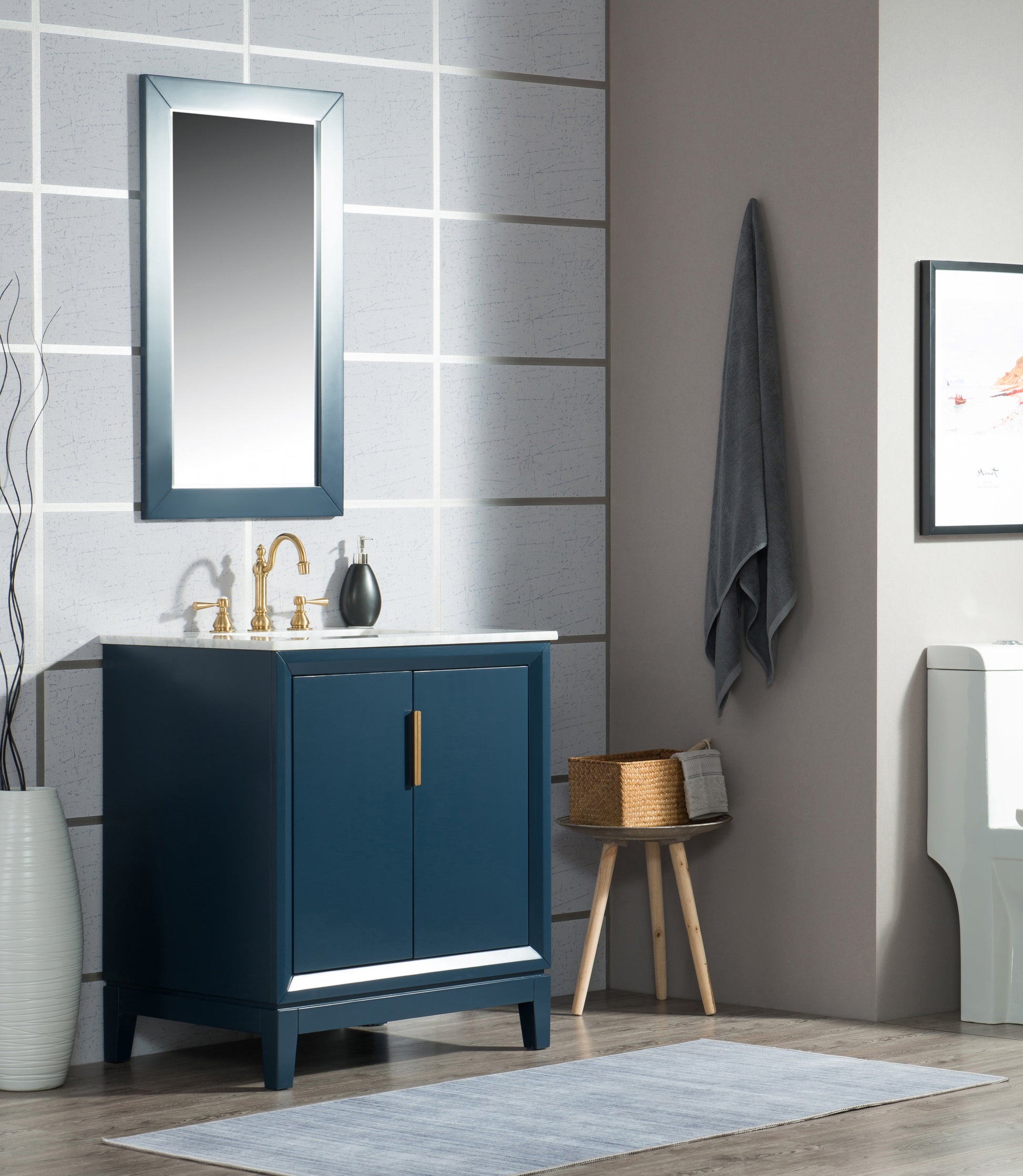 Elizabeth 30-Inch Single Sink Carrara White Marble Vanity In Monarch Blue set
