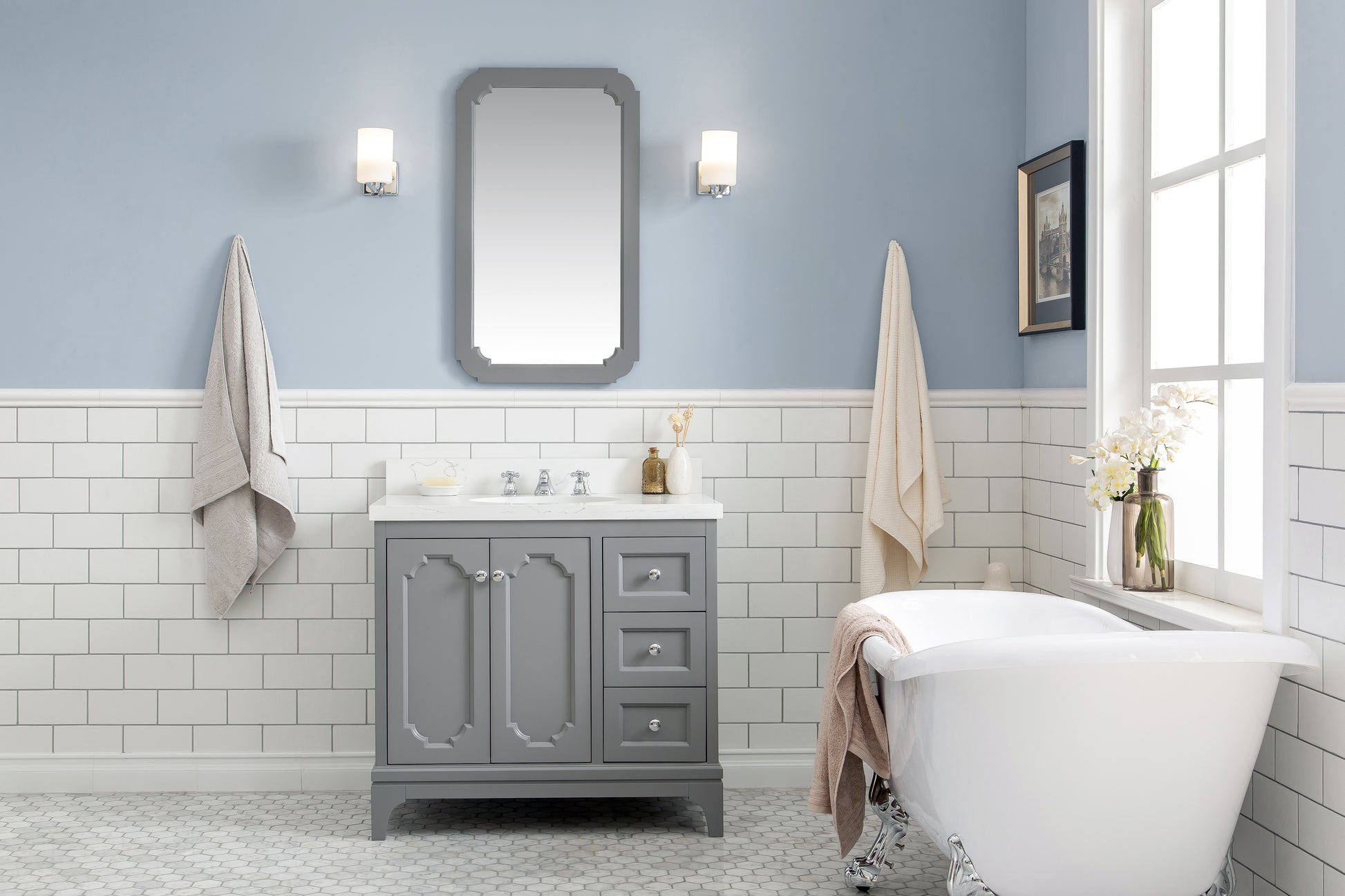 Queen 36-Inch Single Sink Quartz Carrara Vanity In Cashmere Grey set