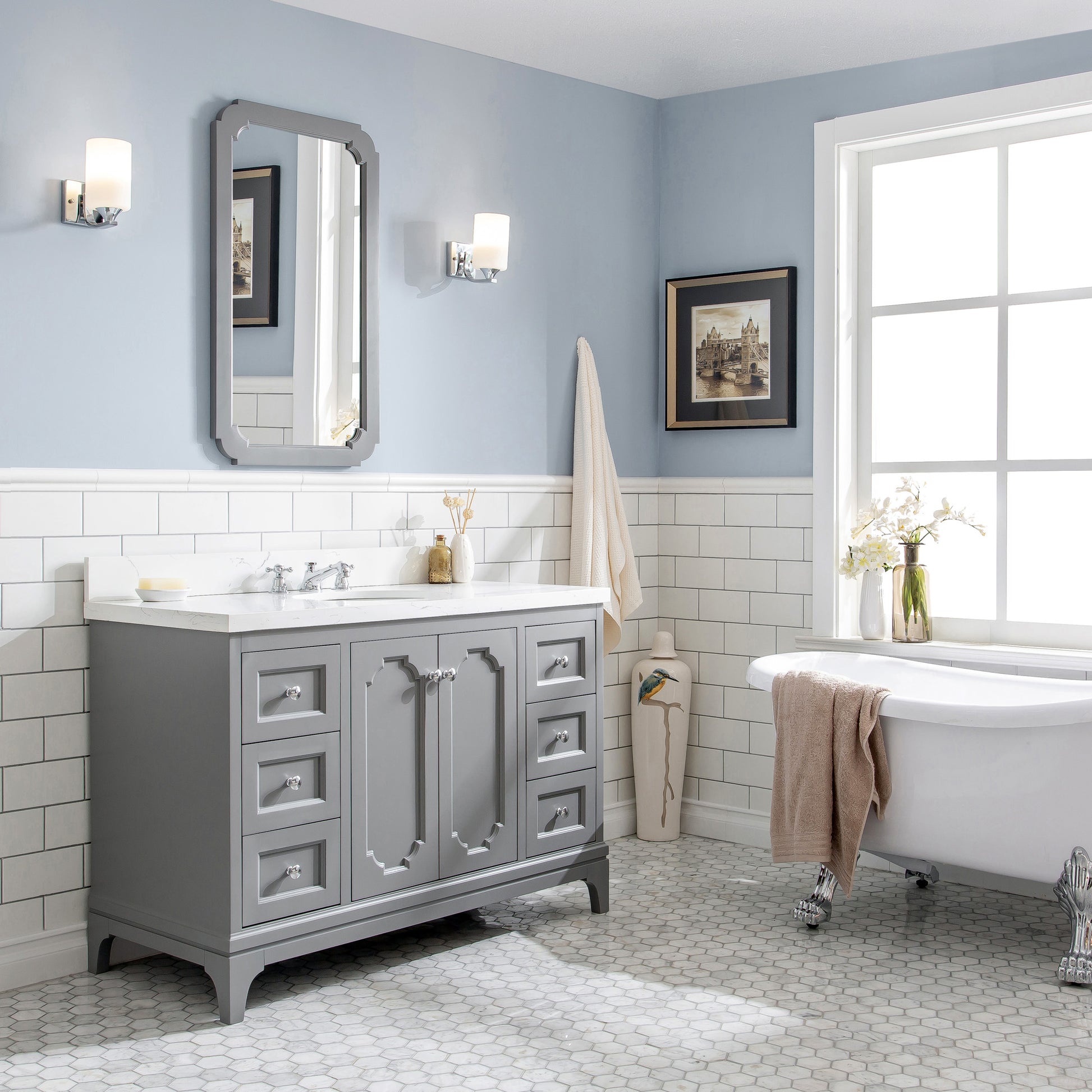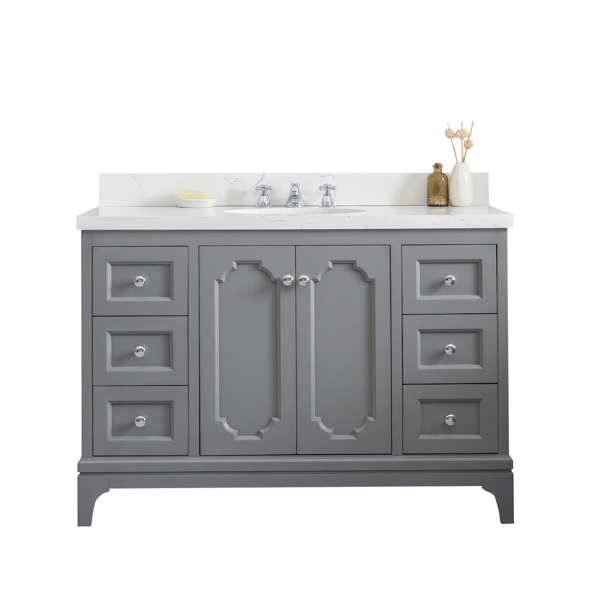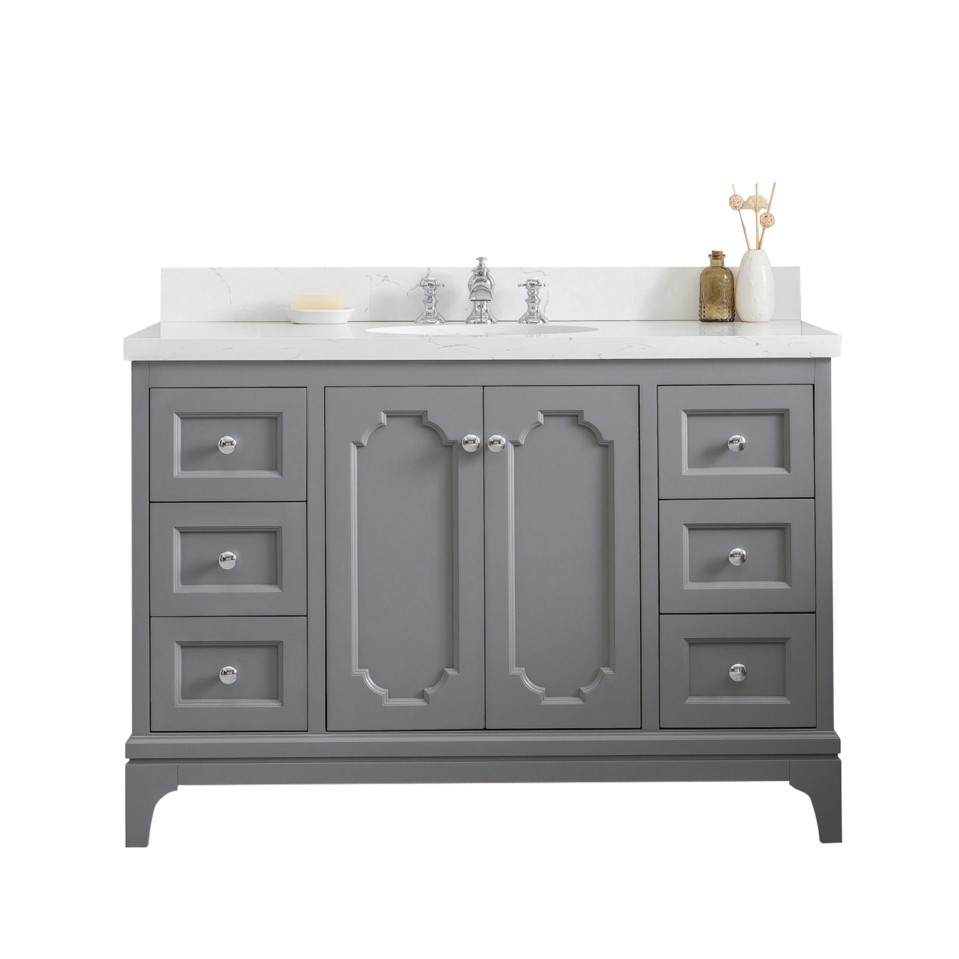 Queen 48-Inch Single Sink Quartz Carrara Vanity In Cashmere Grey set