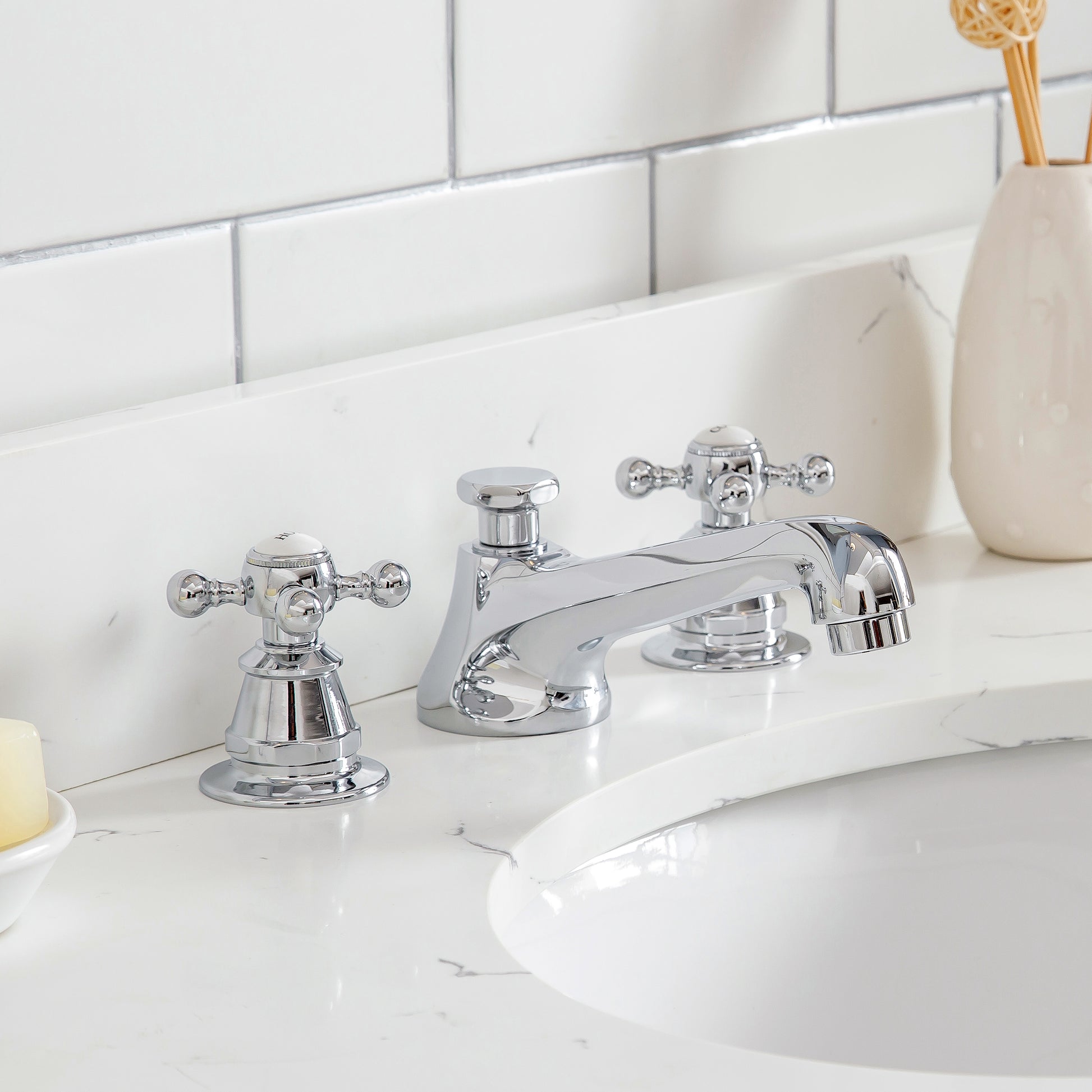 Classic Widespread Lavatory F2-0009 Faucets, Pop-Up Drain in Chrome Finish With Metal Cross Handles