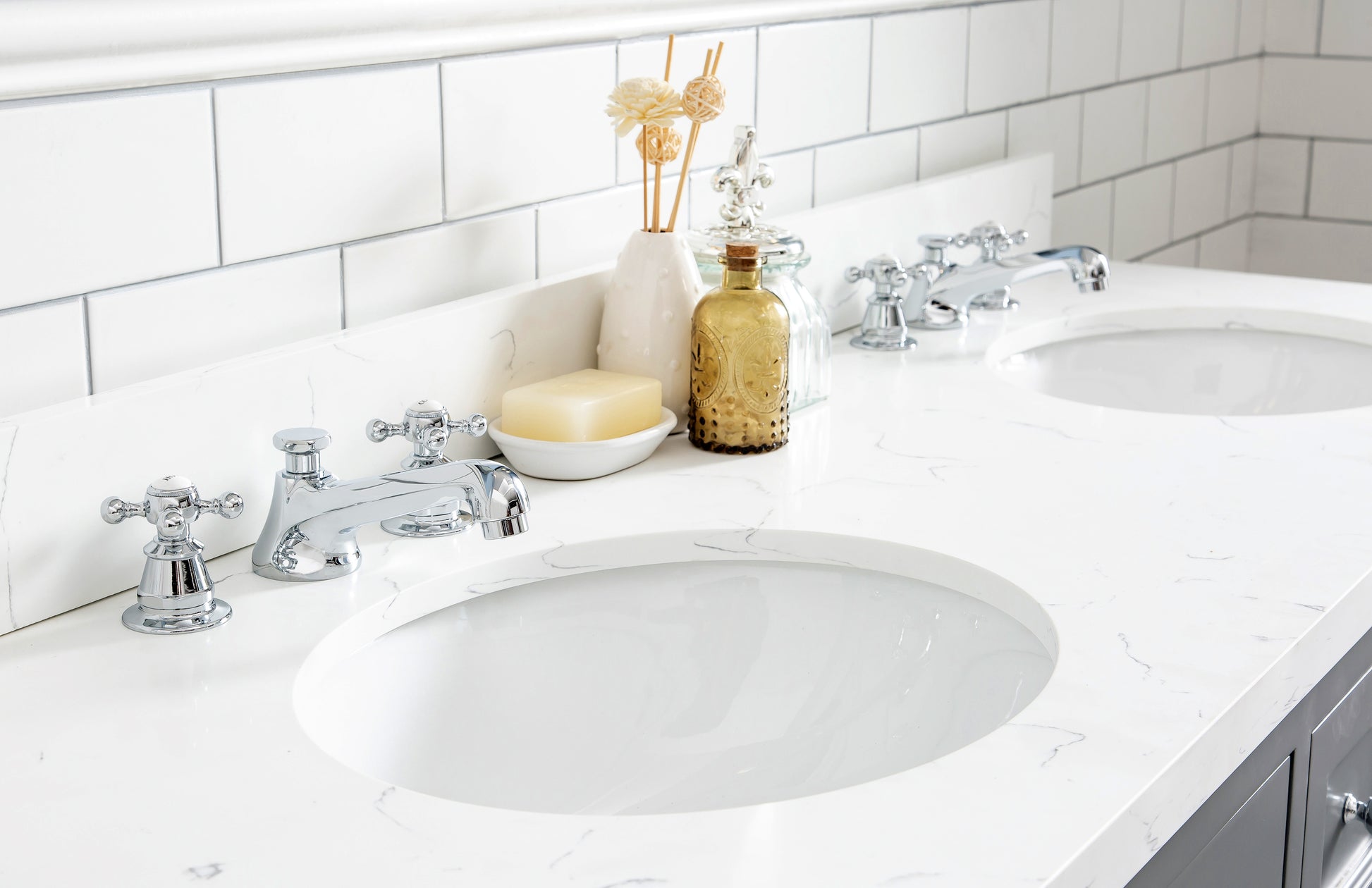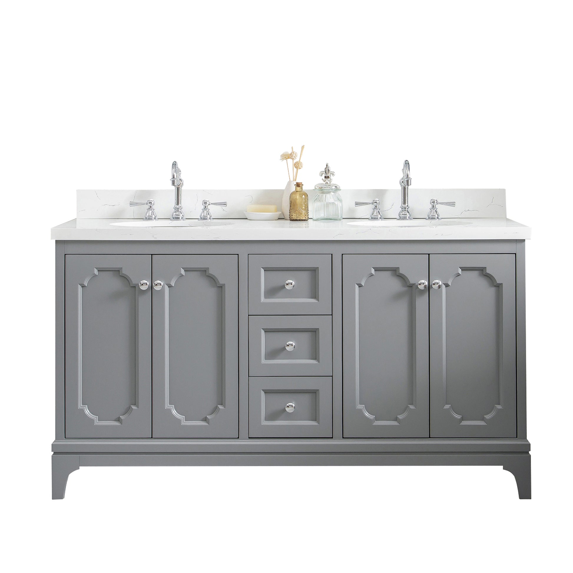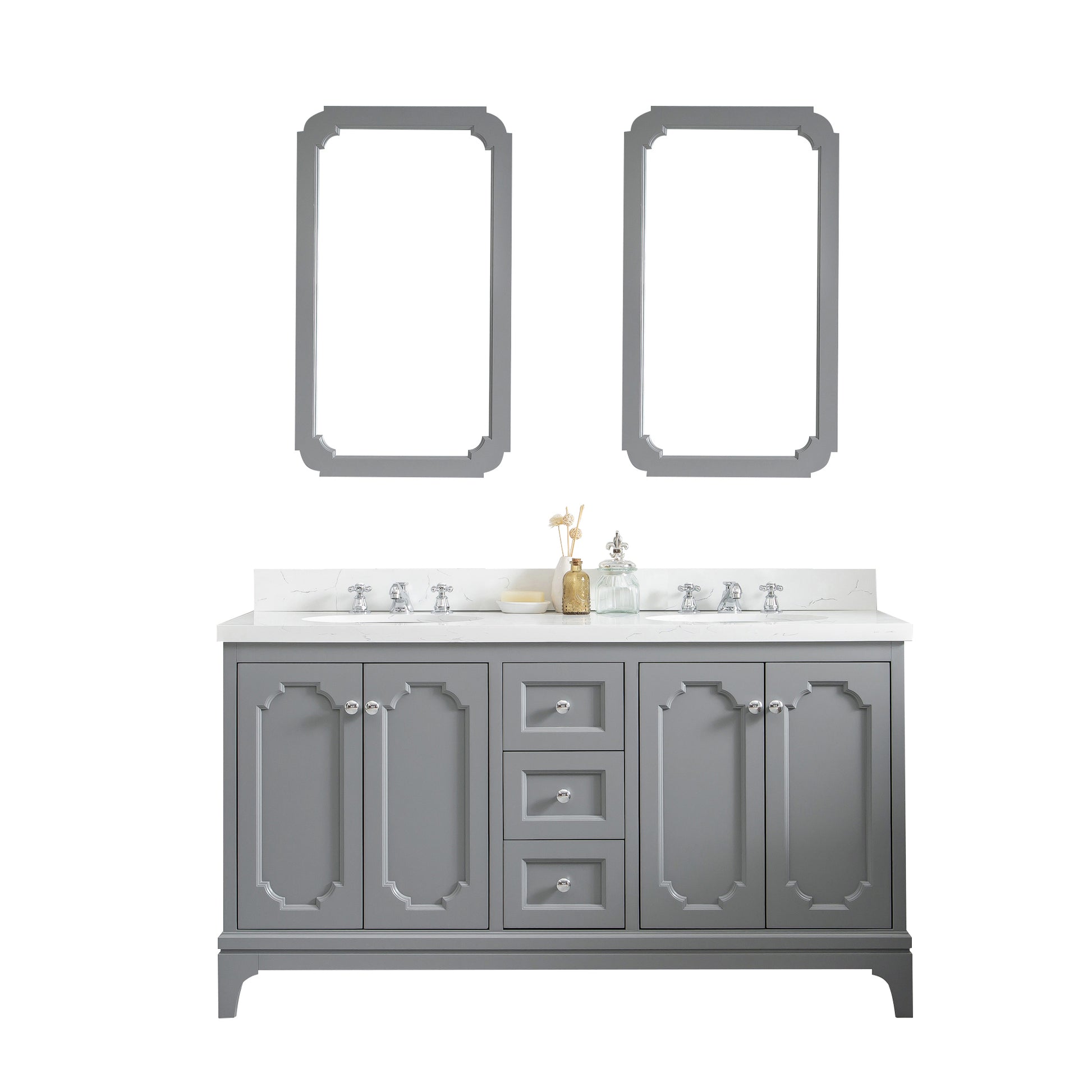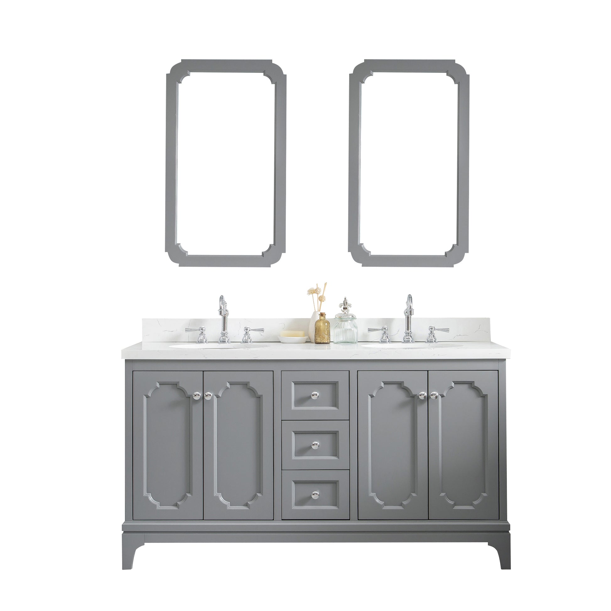 Queen 60-Inch Double Sink Quartz Carrara Vanity In Cashmere Grey set