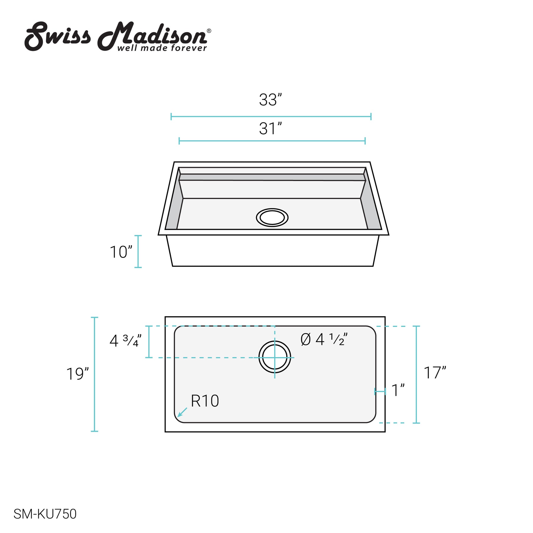 Rivage 33 x 19 Single Basin Undermount Kitchen Workstation Sink