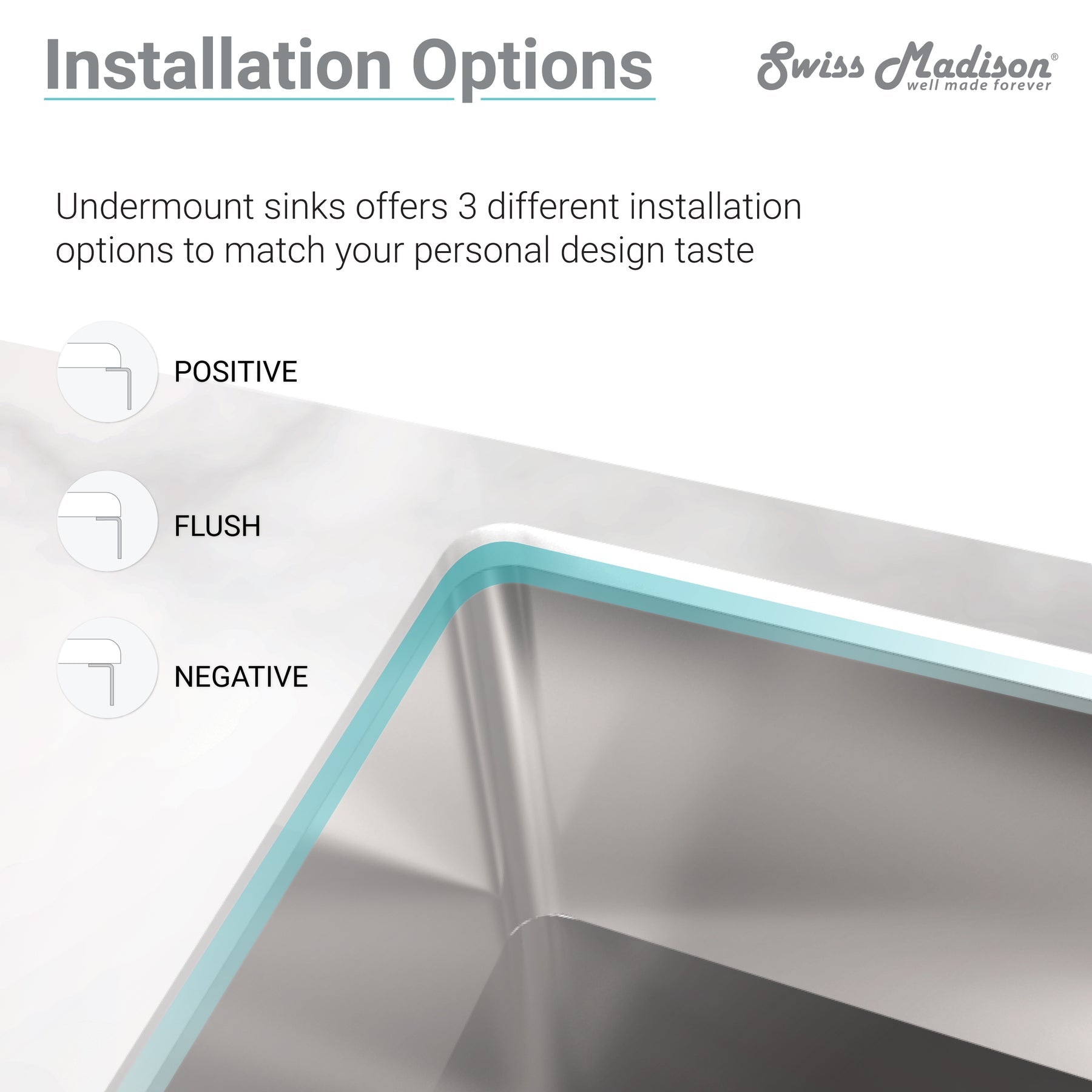 The Rivage Stainless Steel Dual Basin Undermount Sink is an enduring selection for any kitchen application. Its under-mounted design results in a smooth look and a flush mounting with any countertop material. A Rear offset drain allows for maximum undersink storage utilization.