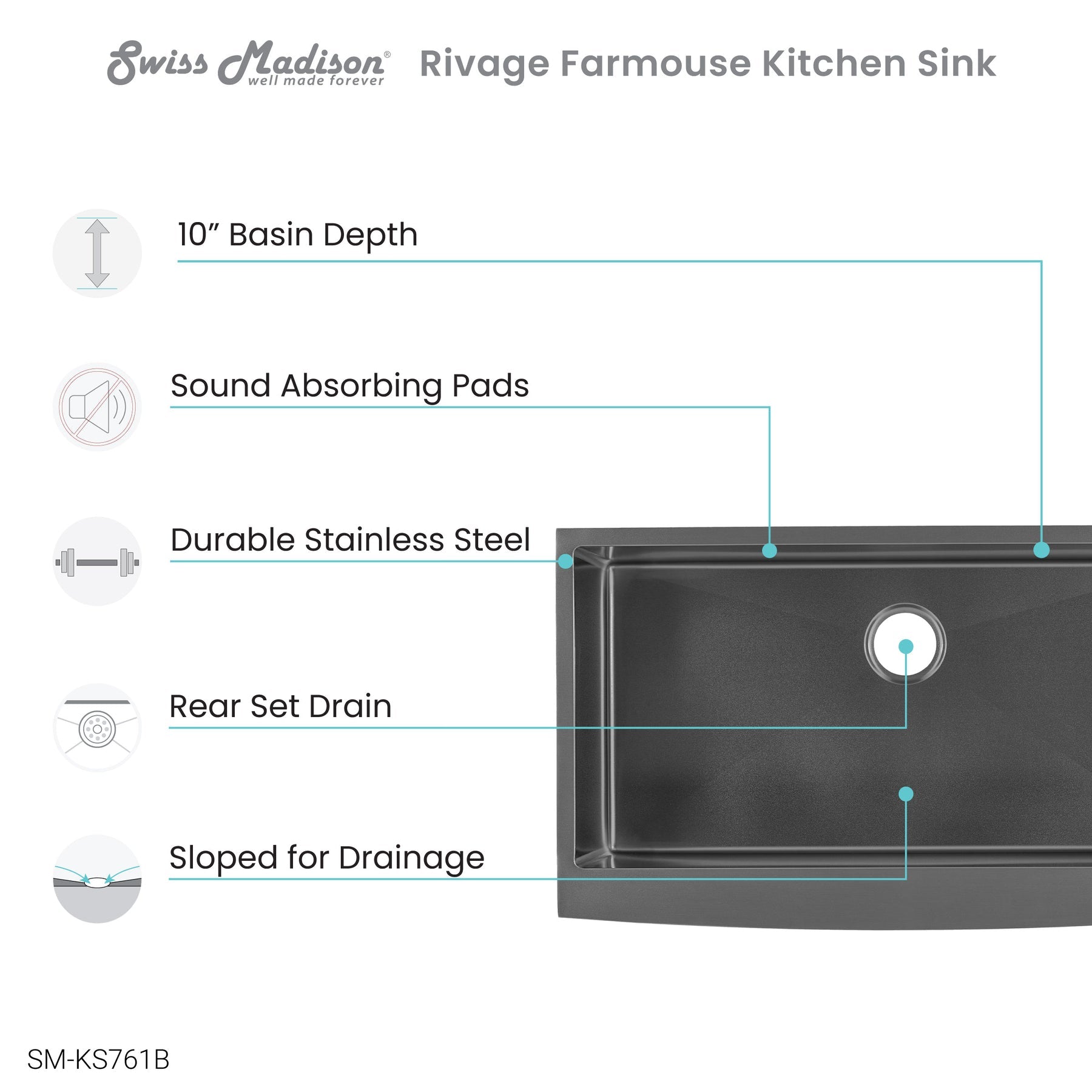 - Rear offset drain hole allows for maximum sink and under-sink cabinet storage needs