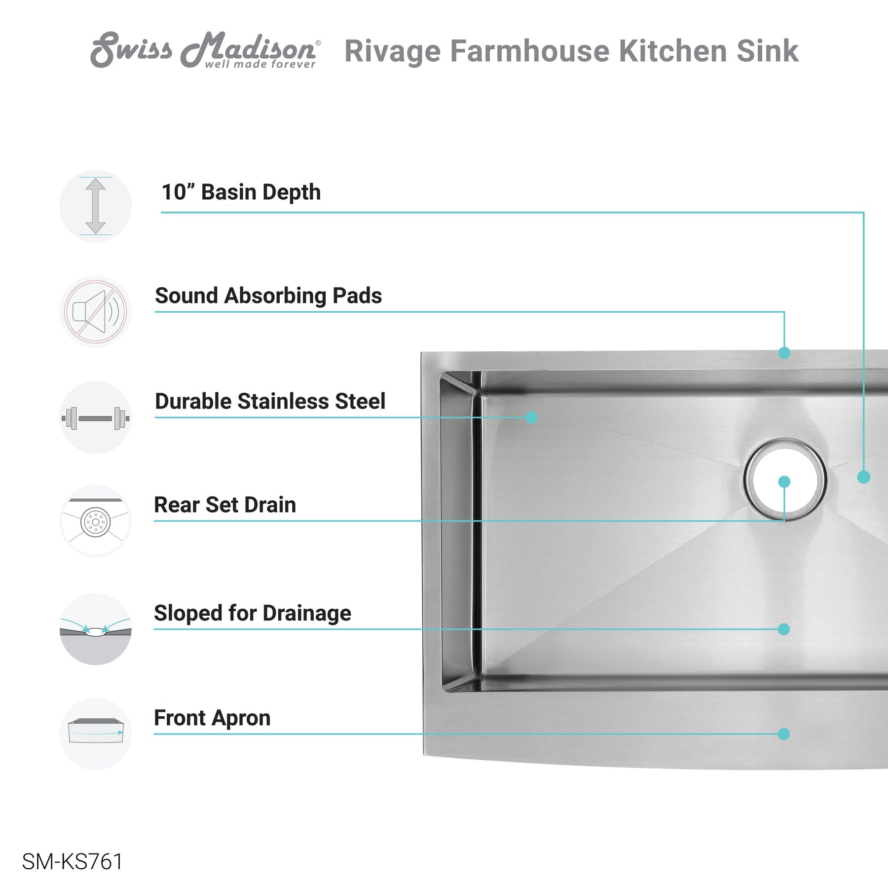 The Rivage Stainless Steel Farmhouse Sink with Apron is a durable selection for any kitchen application. Farmhouse-style designs result in a unique look and invite compliments from any guest. A Rear offset drain allows for better access to under-the-counter storage space.