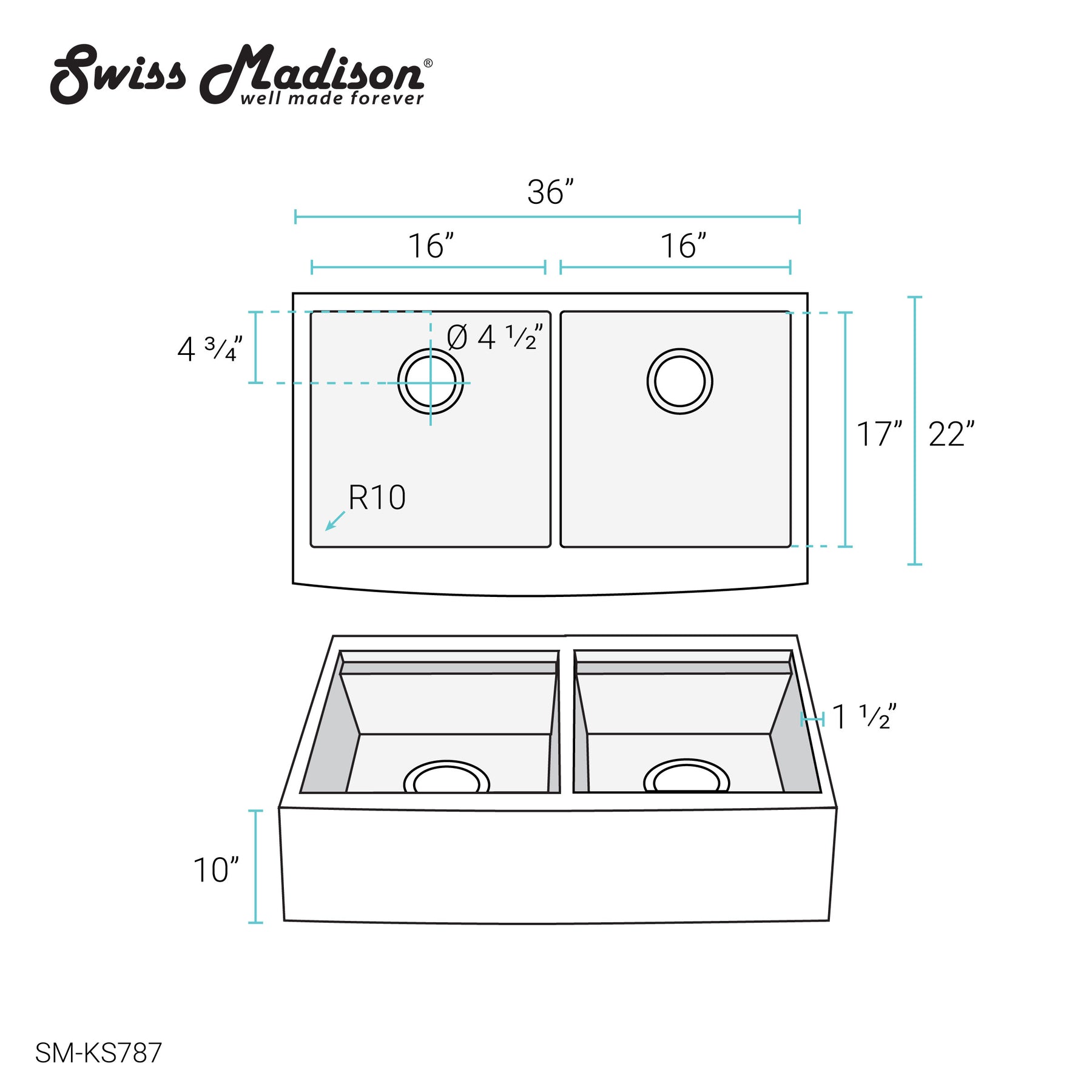 Rivage 36 x 22 Dual Basin Apron Kitchen Workstation Sink