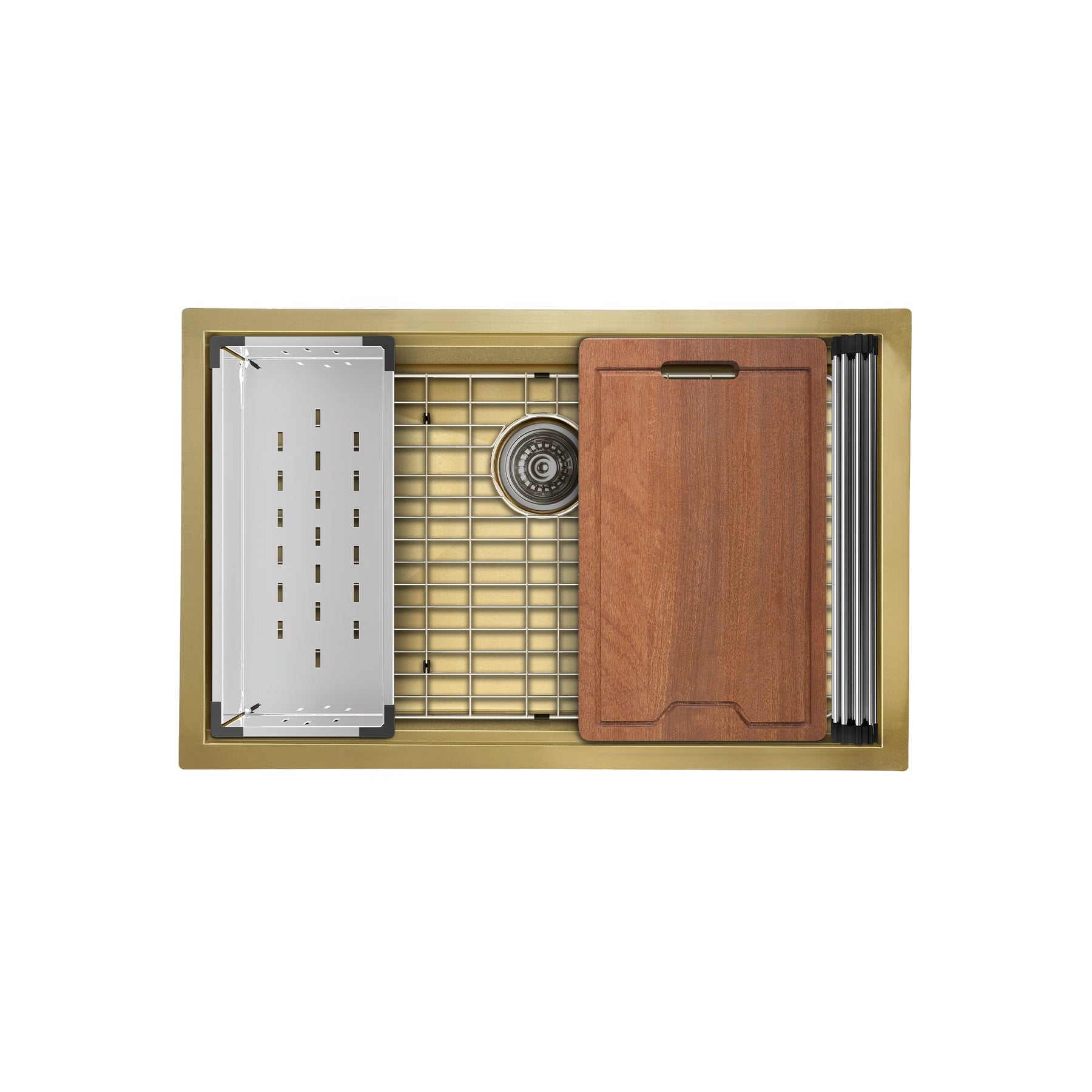 Tourner 30" x 19" Stainless Steel, Single Basin, Undermount Kitchen Workstation Sink in Multi Colors