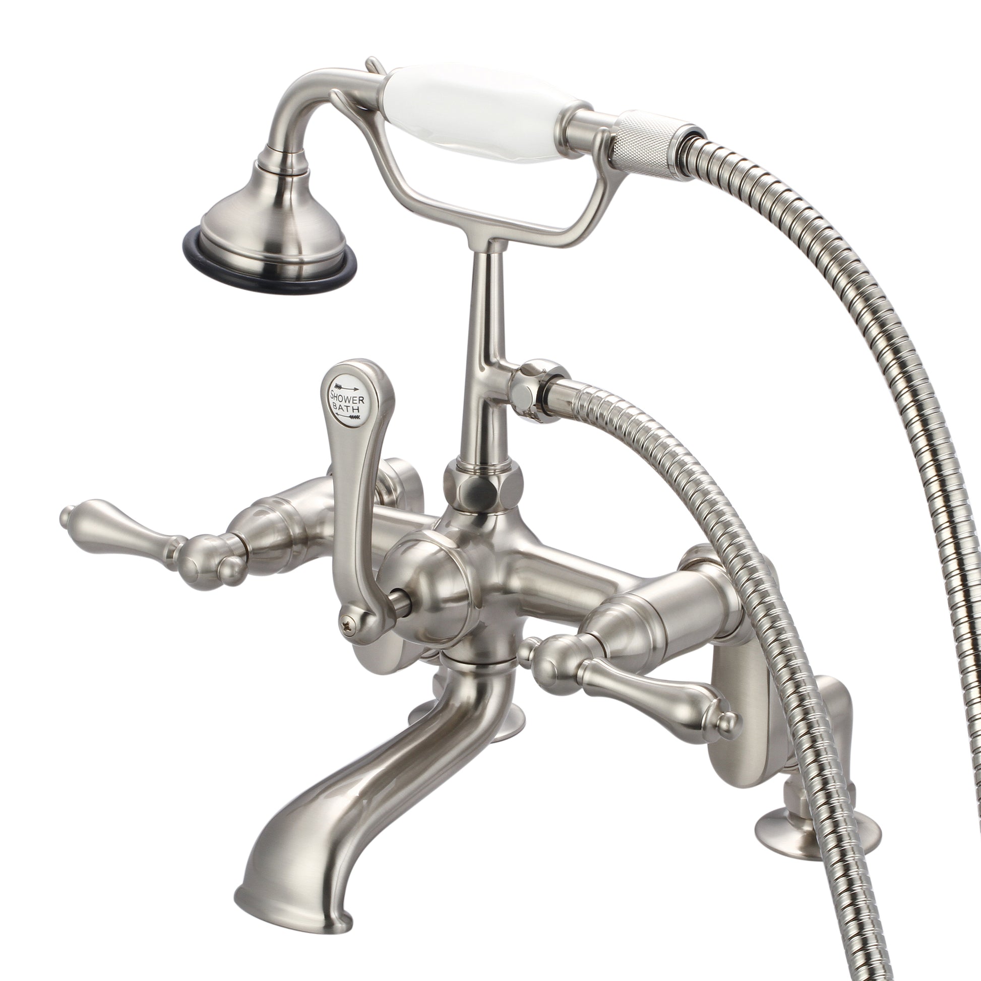 Water Creation's collection of premier vintage clawfoot bathtub fillers will transform any bathroom's decor to the luxury and elegance of yesteryear. The crossroads of timeless design and innovative modern manufacturing processes merge harmoniously to ensure each filler's finishes and function are as reliable as their unmistakable beauty. Made of 100% brass and adorned with a porcelain shower handle, the heavy weight of Water Creation's clawfoot bathtub fillers lends credence to the durability and superior craftsmanship that Water Creation is known for. With the understanding that no one customer is alike, Water Creation has gone the extra mile to ensure satisfaction by giving customers the power to customize the handle style of their clawfoot bathtub fillers. Simply select the style that meets your preferences and start enjoying a world-class tub filler that you had a hand in creating.